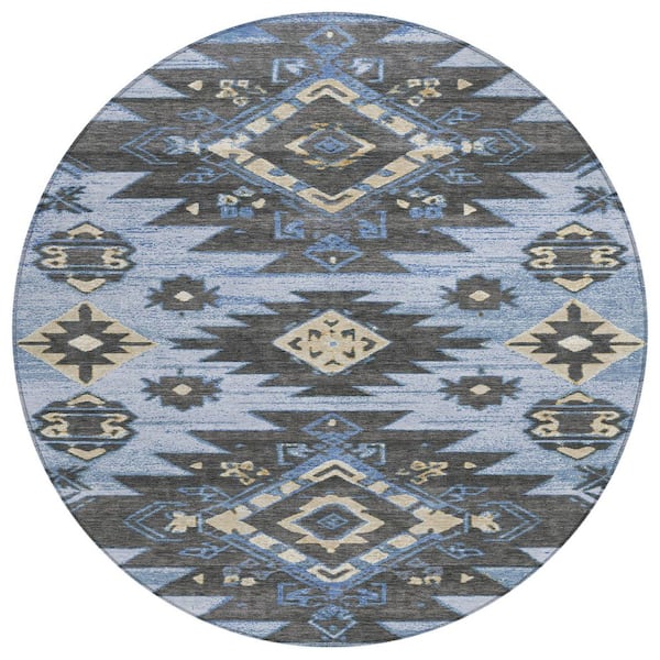 Chantille Machine Washable Indoor/Outdoor Abstract ACN1945 Blue 8 ft. x 8 ft. Round Rug