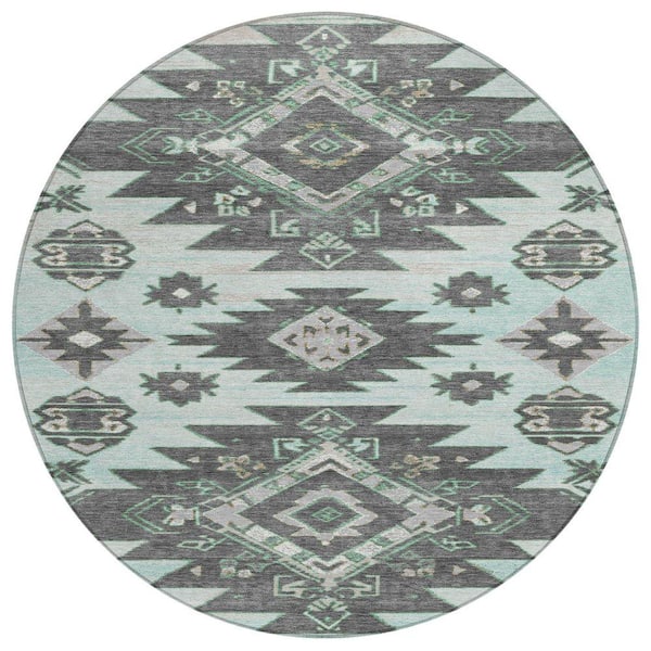 Chantille Machine Washable Indoor/Outdoor Abstract ACN1945 Mint 8 ft. x 8 ft. Round Rug