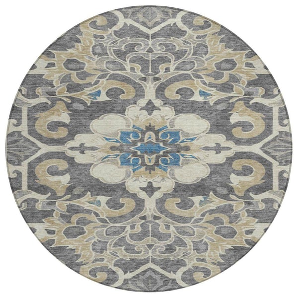 Chantille Machine Washable Indoor/Outdoor Abstract ACN1947 Beige 8 ft. x 8 ft. Round Rug