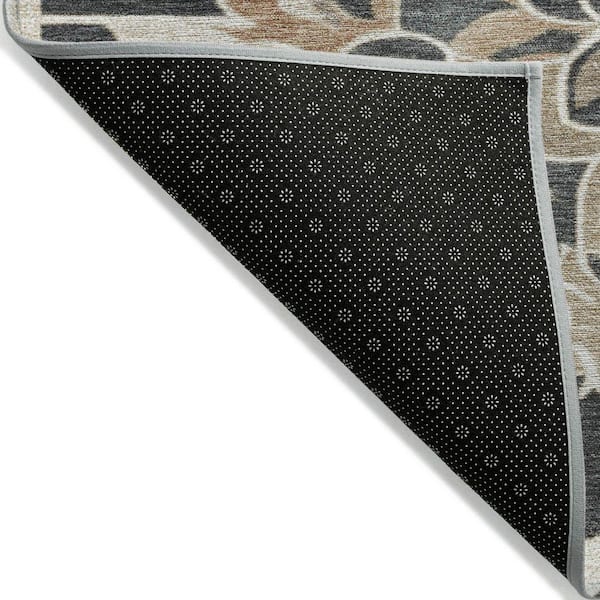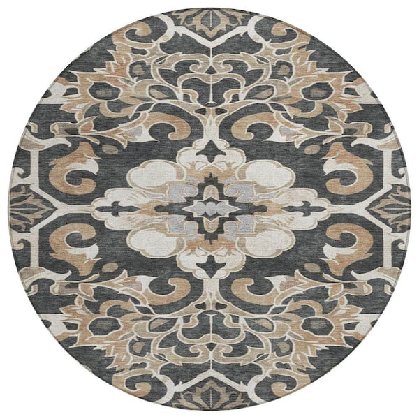 Chantille Machine Washable Indoor/Outdoor Abstract ACN1947 Charcoal 8 ft. x 8 ft. Round Rug