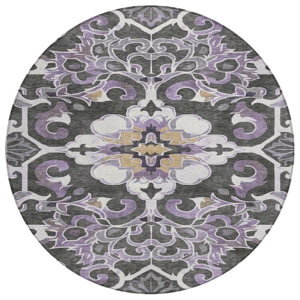 Chantille Machine Washable Indoor/Outdoor Abstract ACN1947 Purple 8 ft. x 8 ft. Round Rug