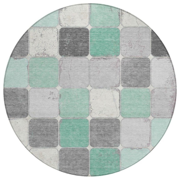 Chantille Machine Washable Indoor/Outdoor Abstract ACN1948 Mint 8 ft. x 8 ft. Round Rug