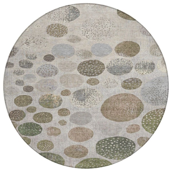 Chantille Machine Washable Indoor/Outdoor Abstract ACN1952 Taupe 8 ft. x 8 ft. Round Rug