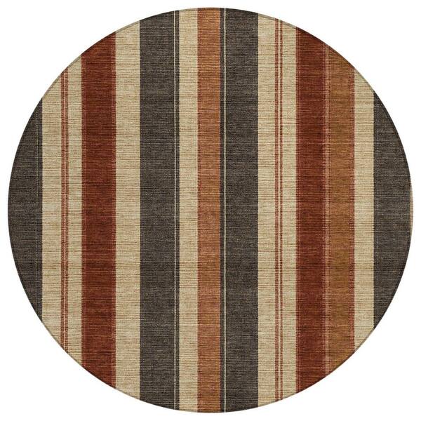 Chantille Machine Washable Indoor/Outdoor Abstract ACN1954 Chocolate 8 ft. x 8 ft. Round Rug