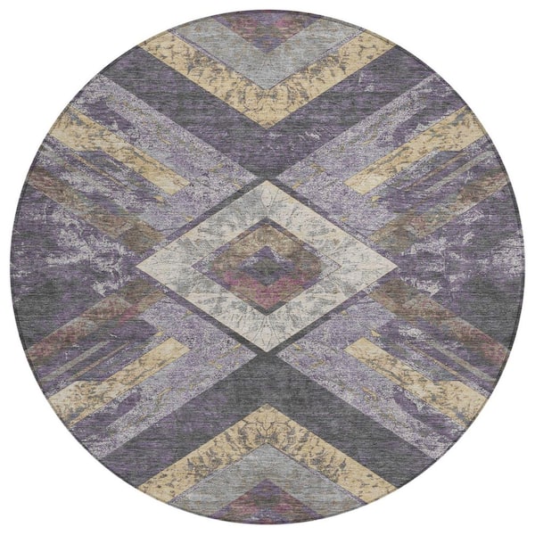 Chantille Machine Washable Indoor/Outdoor Abstract ACN1955 Purple 8 ft. x 8 ft. Round Rug