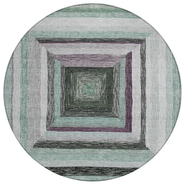 Chantille Machine Washable Indoor/Outdoor Abstract ACN1957 Seafoam 8 ft. x 8 ft. Round Rug