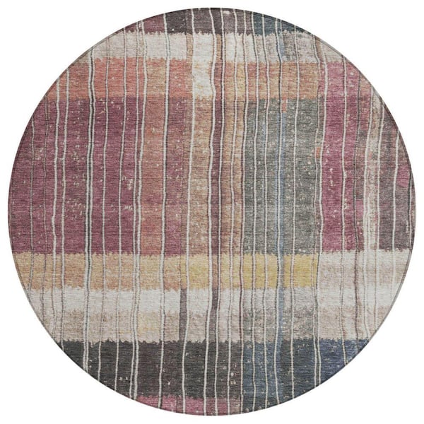 Chantille Machine Washable Indoor/Outdoor Abstract ACN1962 Mauve 8 ft. x 8 ft. Round Rug