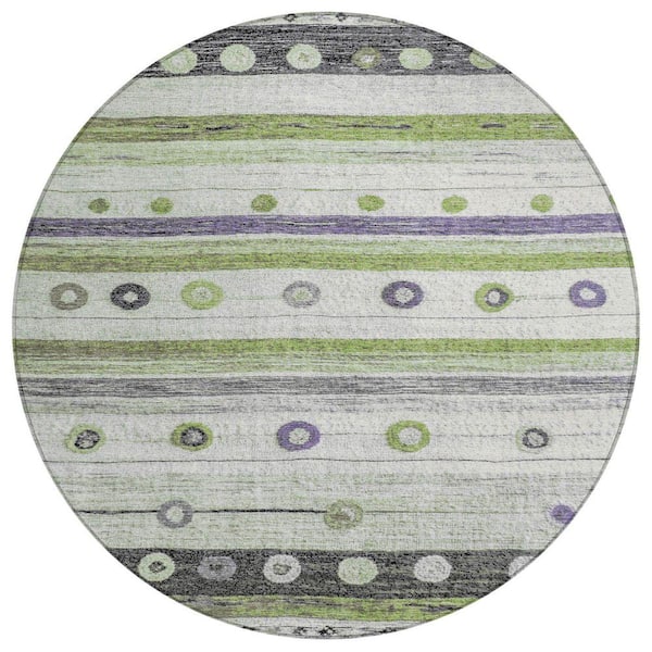 Chantille Machine Washable Indoor/Outdoor Abstract ACN1964 Aloe 8 ft. x 8 ft. Round Rug