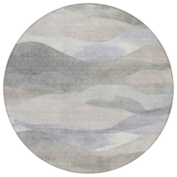 Chantille Machine Washable Indoor/Outdoor Abstract ACN1966 Beige 8 ft. x 8 ft. Round Rug
