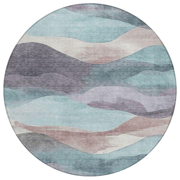 Chantille Machine Washable Indoor/Outdoor Abstract ACN1966 Teal 8 ft. x 8 ft. Round Rug