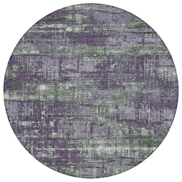 Chantille Machine Washable Indoor/Outdoor Abstract ACN1969 Purple 8 ft. x 8 ft. Round Rug