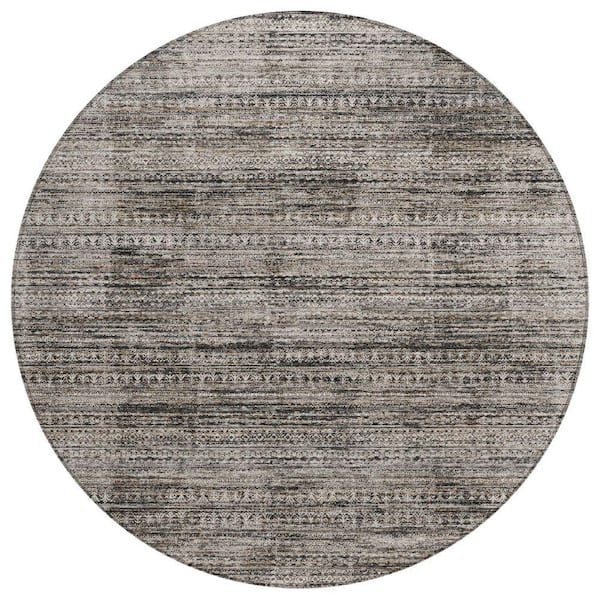 Chantille Machine Washable Indoor/Outdoor Abstract ACN1971 Taupe 8 ft. x 8 ft. Round Rug