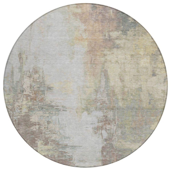 Chantille Machine Washable Indoor/Outdoor Abstract ACN1977 Tan 8 ft. x 8 ft. Round Rug