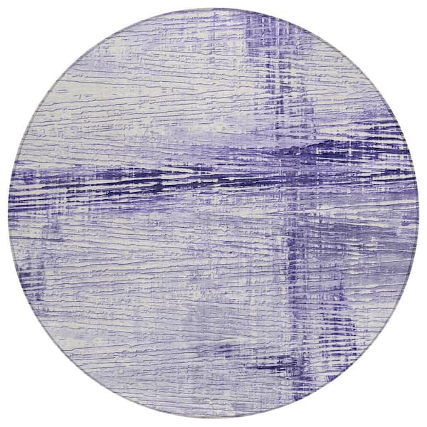 Chantille Machine Washable Indoor/Outdoor Abstract ACN1981 Lavender 8 ft. x 8 ft. Round Rug