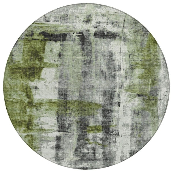 Chantille Machine Washable Indoor/Outdoor Abstract ACN1982 Olive 8 ft. x 8 ft. Round Rug