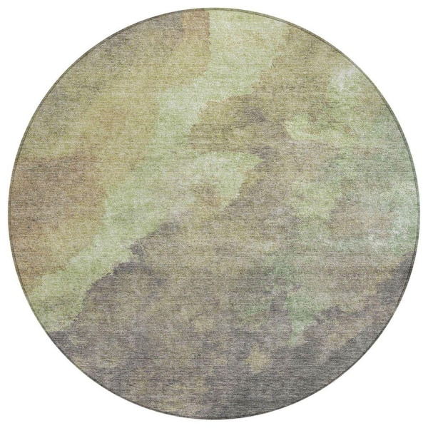 Chantille Machine Washable Indoor/Outdoor Abstract ACN1983 Aloe 8 ft. x 8 ft. Round Rug