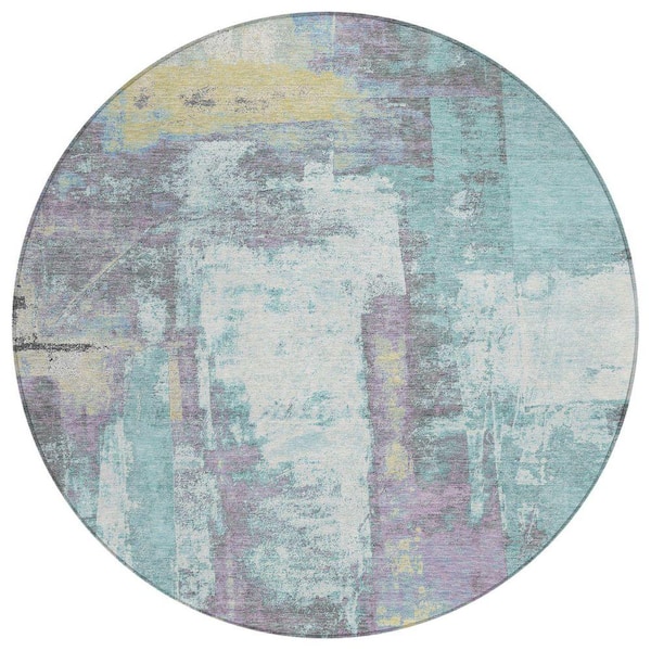 Chantille Machine Washable Indoor/Outdoor Abstract ACN1984 Teal 8 ft. x 8 ft. Round Rug