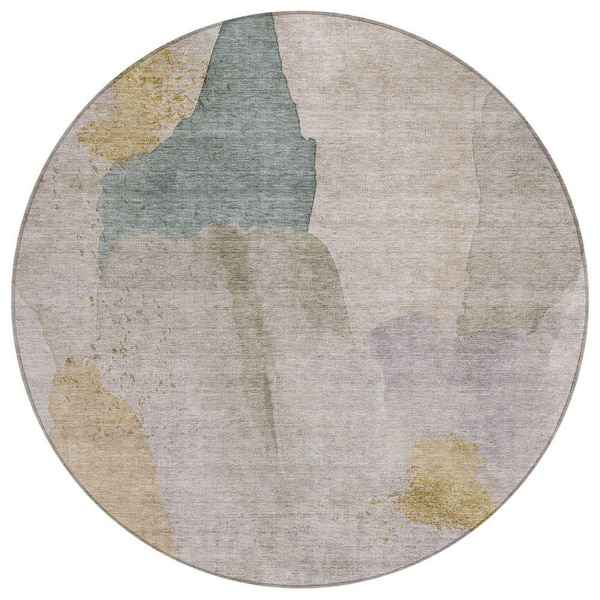 Chantille Machine Washable Indoor/Outdoor Abstract ACN1986 Beige 8 ft. x 8 ft. Round Rug
