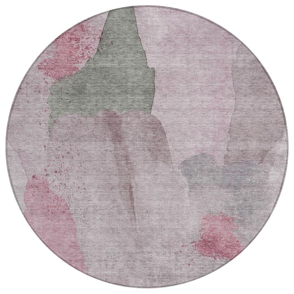 Chantille Machine Washable Indoor/Outdoor Abstract ACN1986 Blush 8 ft. x 8 ft. Round Rug