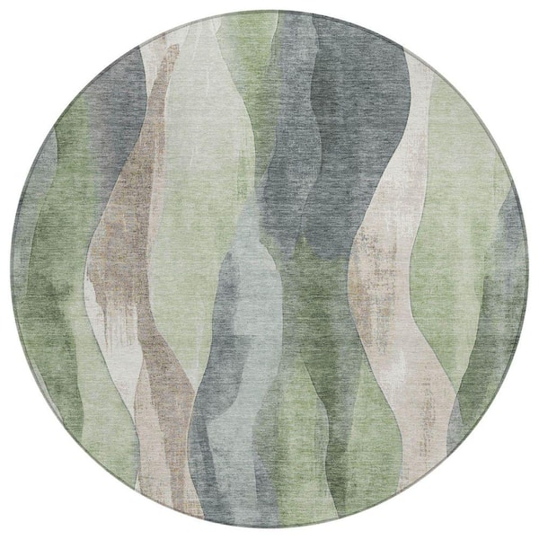 Chantille Machine Washable Indoor/Outdoor Abstract ACN1989 Fern 8 ft. x 8 ft. Round Rug