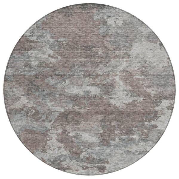 Chantille Machine Washable Indoor/Outdoor Abstract ACN1991 Brown 8 ft. x 8 ft. Round Rug