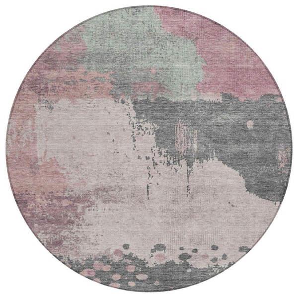 Chantille Machine Washable Indoor/Outdoor Abstract ACN1994 Blush 8 ft. x 8 ft. Round Rug