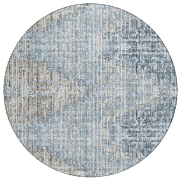 Chantille Machine Washable Indoor/Outdoor Abstract ACN1996 Denim 8 ft. x 8 ft. Round Rug
