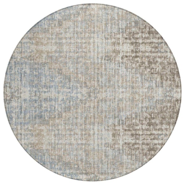 Chantille Machine Washable Indoor/Outdoor Abstract ACN1996 Putty 8 ft. x 8 ft. Round Rug