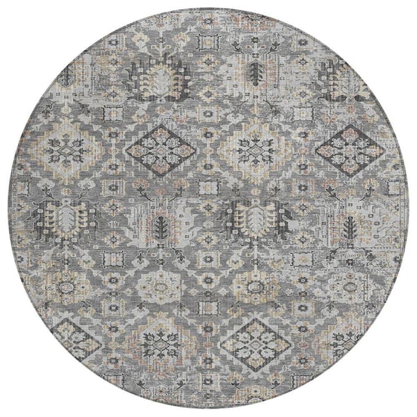 Chantille Machine Washable Indoor/Outdoor Abstract ACN1998 Gray 8 ft. x 8 ft. Round Rug
