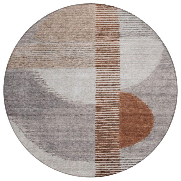 Chantille Machine Washable Indoor/Outdoor Abstract ACN2001 Taupe 8 ft. x 8 ft. Round Rug