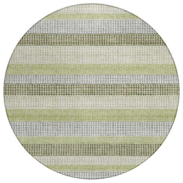 Chantille Machine Washable Indoor/Outdoor Abstract ACN2008 Aloe 8 ft. x 8 ft. Round Rug