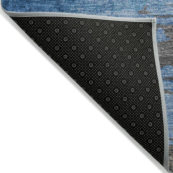 Chantille Machine Washable Indoor/Outdoor Abstract ACN2010 Denim 8 ft. x 8 ft. Round Rug