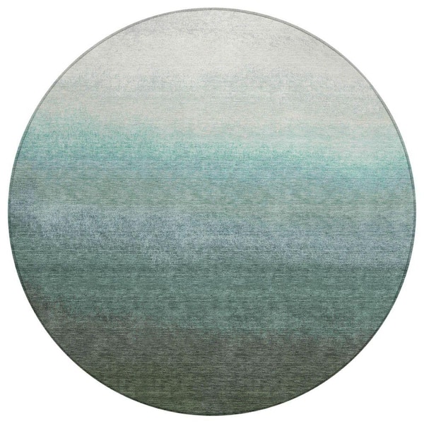 Chantille Machine Washable Indoor/Outdoor Abstract ACN2012 Seafoam 8 ft. x 8 ft. Round Rug