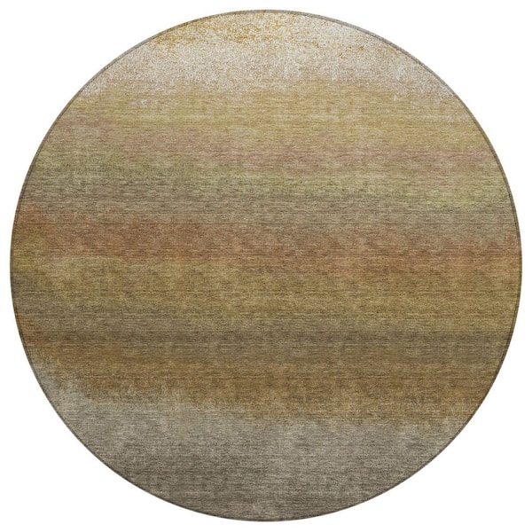 Chantille Machine Washable Indoor/Outdoor Abstract ACN2012 Taupe 8 ft. x 8 ft. Round Rug