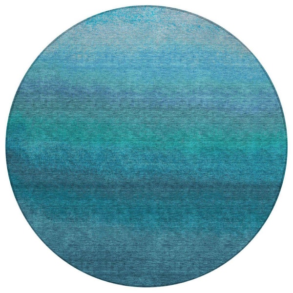 Chantille Machine Washable Indoor/Outdoor Abstract ACN2012 Teal 8 ft. x 8 ft. Round Rug