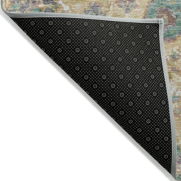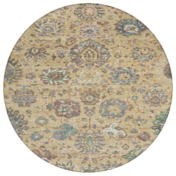 Chantille Machine Washable Indoor/Outdoor Abstract ACN2013 Gold 8 ft. x 8 ft. Round Rug