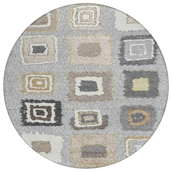 Chantille Machine Washable Indoor/Outdoor Abstract ACN2014 Gray 8 ft. x 8 ft. Round Rug