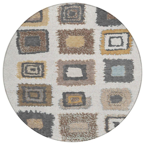Chantille Machine Washable Indoor/Outdoor Abstract ACN2014 Ivory 8 ft. x 8 ft. Round Rug