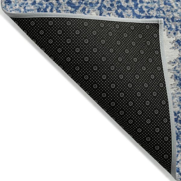 Chantille Machine Washable Indoor/Outdoor Abstract ACN2014 Navy 8 ft. x 8 ft. Round Rug