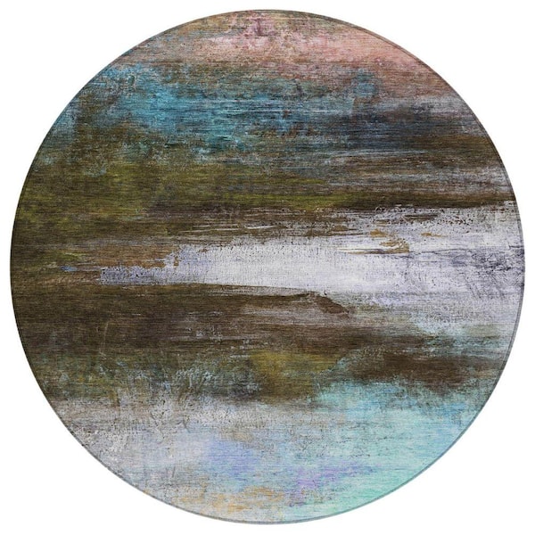 Chantille Machine Washable Indoor/Outdoor Abstract ACN2016 Brown 8 ft. x 8 ft. Area Rug