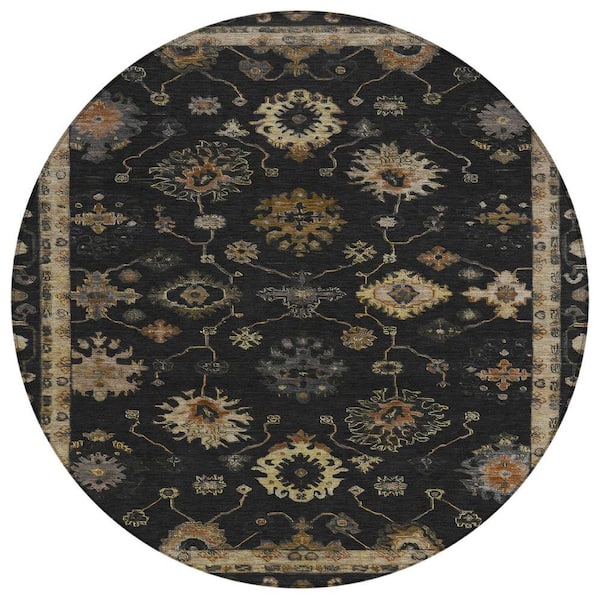 Chantille Machine Washable Indoor/Outdoor Abstract ACN2045 Black 8 ft. x 8 ft. Area Rug