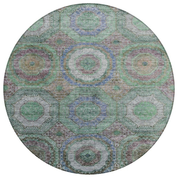 Chantille Machine Washable Indoor/Outdoor Abstract ACN2049 Green 8 ft. x 8 ft. Area Rug