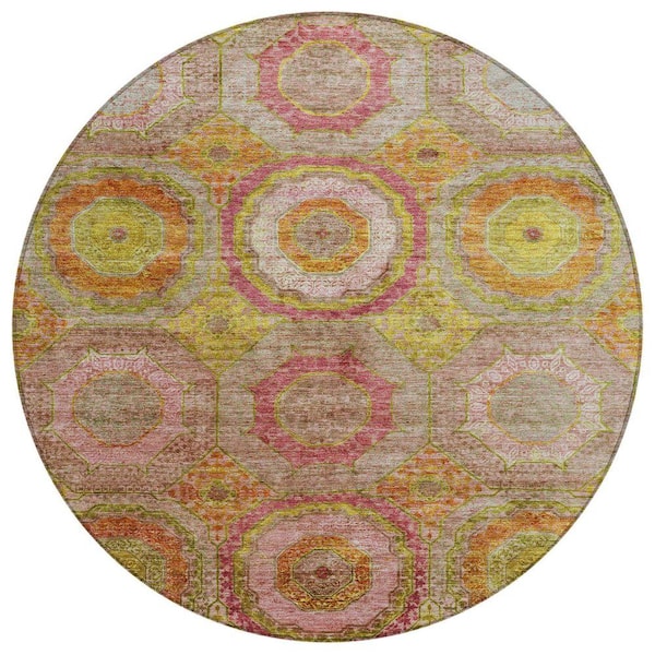 Chantille Machine Washable Indoor/Outdoor Abstract ACN2049 Orange 8 ft. x 8 ft. Area Rug