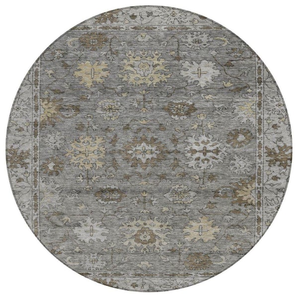 Chantille Machine Washable Indoor/Outdoor Abstract ACN2051 Pewter 8 ft. x 8 ft. Area Rug