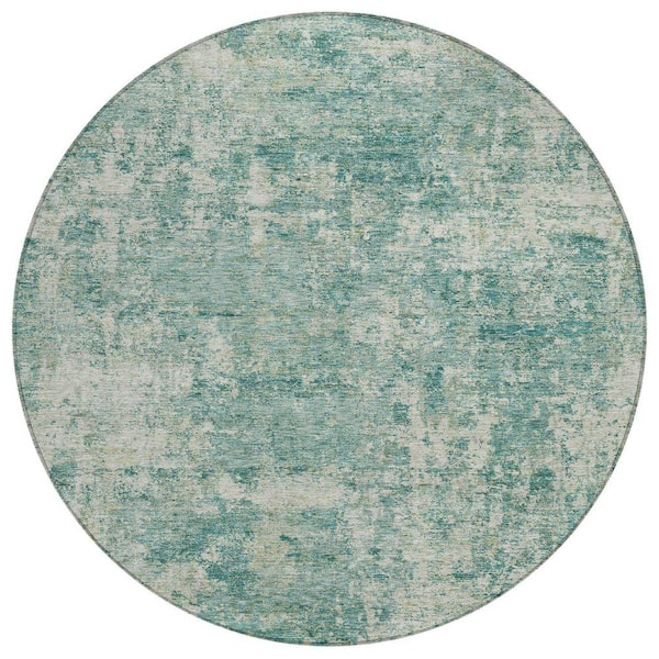 Chantille Machine Washable Indoor/Outdoor Abstract ACN2061 Teal 8 ft. x 8 ft. Area Rug