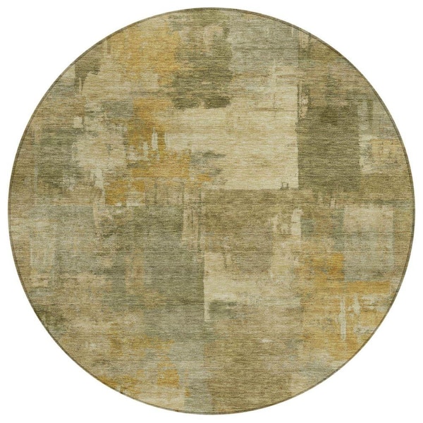 Chantille Machine Washable Indoor/Outdoor Abstract ACN2069 Khaki 8 ft. x 8 ft. Area Rug