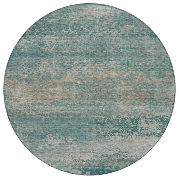 Chantille Machine Washable Indoor/Outdoor Abstract ACN2071 Aqua 8 ft. x 8 ft. Area Rug