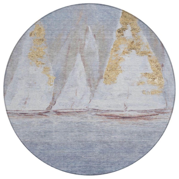 Chantille Machine Washable Indoor/Outdoor Abstract ACN2084 Blue 8 ft. x 8 ft. Area Rug