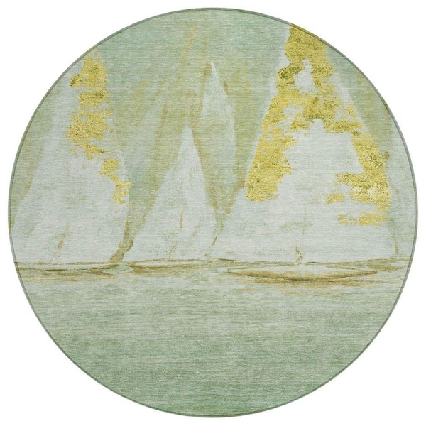 Chantille Machine Washable Indoor/Outdoor Abstract ACN2084 Green 8 ft. x 8 ft. Area Rug