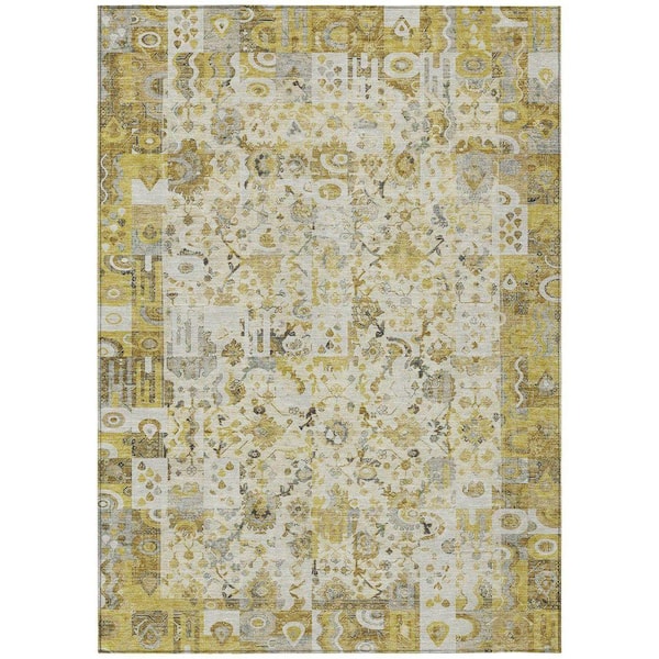 Chantille Machine Washable Indoor/Outdoor Abstract ACN2099 Gold 8 ft. x 10 ft. Area Rug